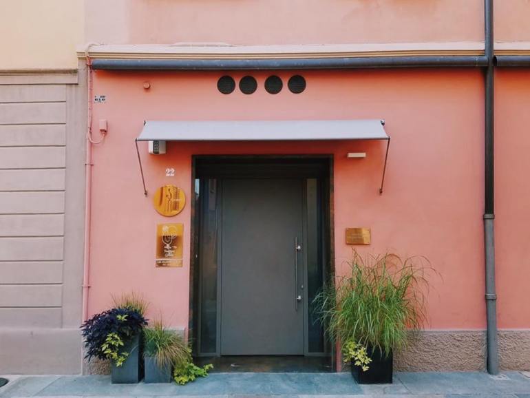 Osteria Francescana của bếp trưởng và chủ sở hữu Massimo Bottura ngự trên đại lộ Hollywood the Walk of Fame, Modena hay còn gọi là  đường Via Stella – một con hẻm bé tí xíu và lặng lẽ. Vẻ bề ngoài của nhà hàng không có mảy may lấy một cm hút mắt: tường sơn màu hồng đất, một cánh cửa thép an ninh kiểu nhà tù đóng chặt, một cửa sổ luôn che rèm trắng đục dày loại khăn trải bàn, một camera an ninh treo lững lờ phía trên cửa sổ, ba tấm bảng vàng ghi tên quán và ghi ba sao Michelin, hai chậu cây cảnh nhỏ thó trơ trụi. Không có gì đặc biệt ngoài việc cửa lúc nào cũng đóng im ỉm như…nhà tù. Nếu không nghe quảng bá trước chắc chẳng bao giờ tôi lại có thể hình dung đây là chân dung của nhà hàng bếp trưởng giỏi nhất nước Ý và lừng danh thế giới.